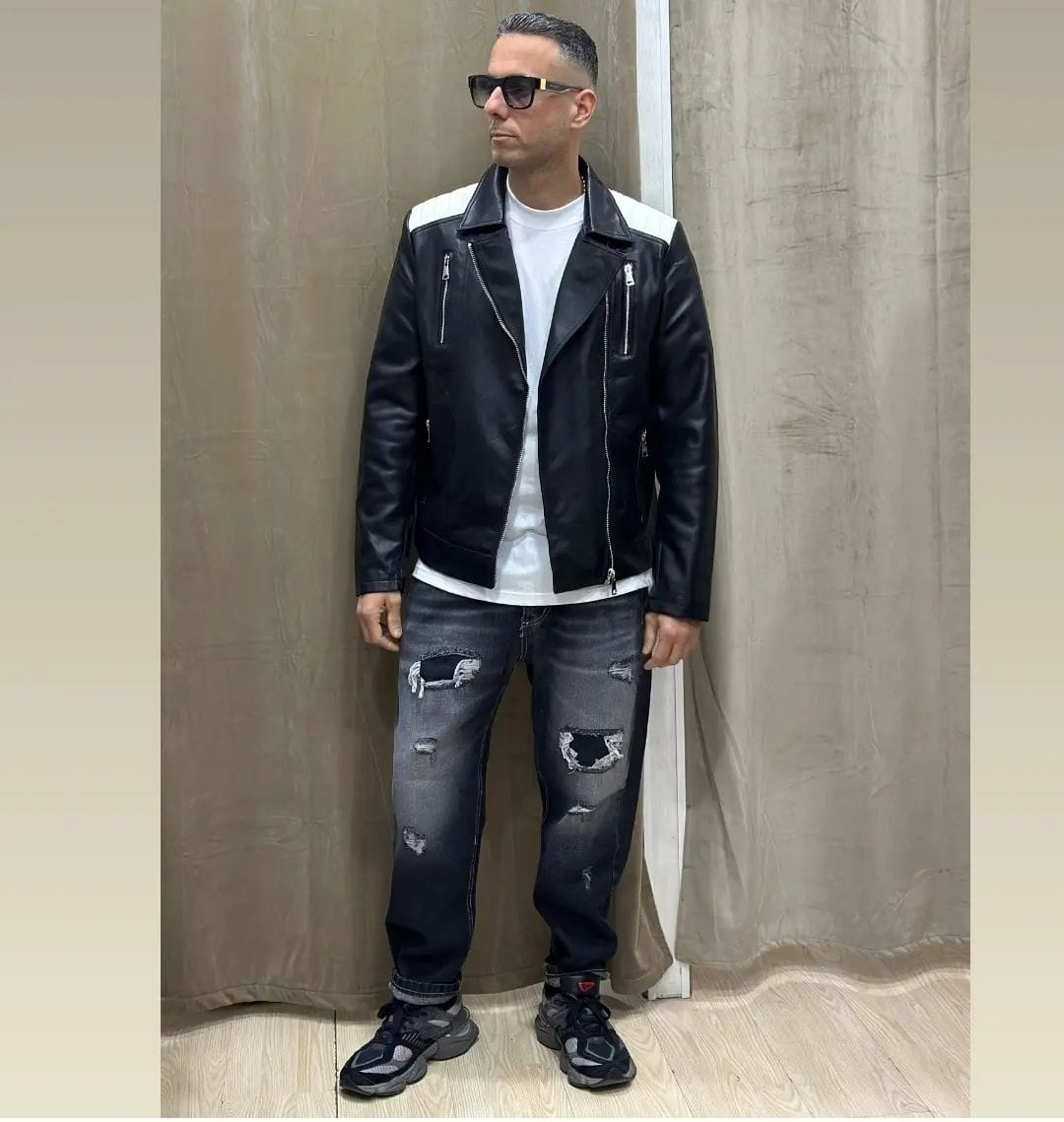 Chiodo in ecopelle black white