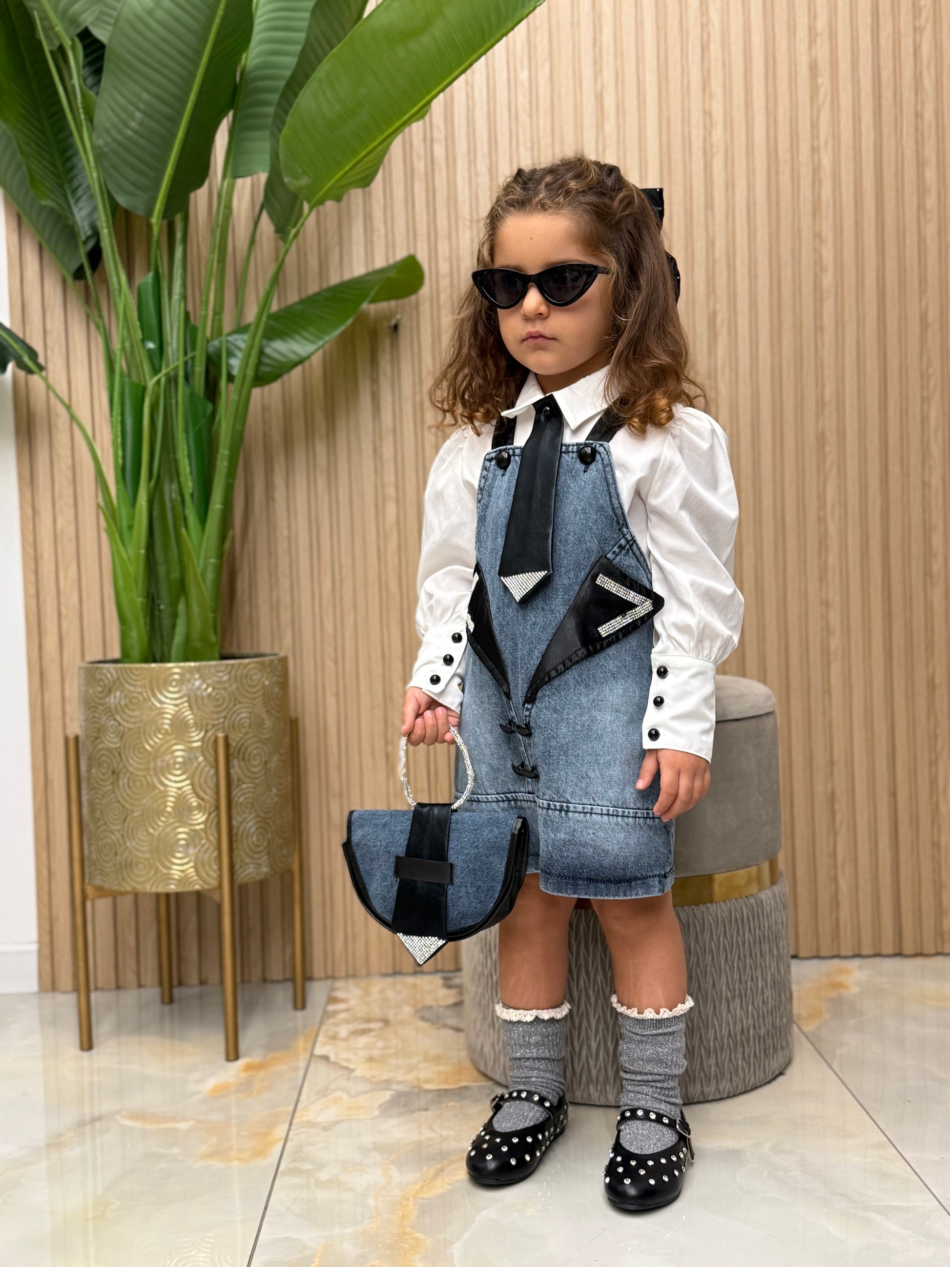 La modellina indossa 3 anni coordinato completo di borsa